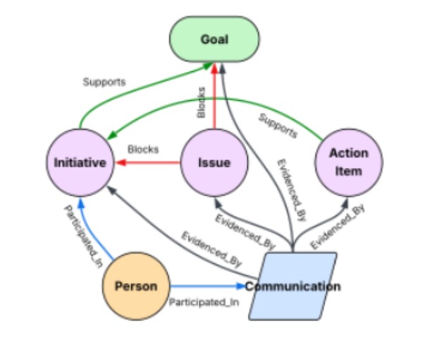 - Extracting entities and relationships into a knowledge graph of goals, initiatives, issues, and actions.